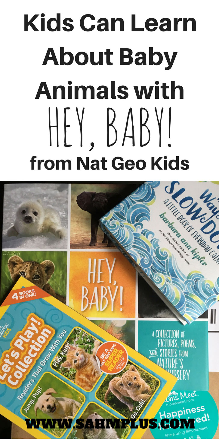 Now, B is getting to the age where I need to start thinking about incorporating some home preschool into our day. And this time, I’m armed with the information to start our educational journey early with these non-fiction books too! That’s why I’m excited to have received Hey, Baby!: A Collection of Pictures, Poems, and Stories from Nature’s Nursery in partnership with Moms Meet. This is another adorable and informative book about baby animals from National Geographic Kids.