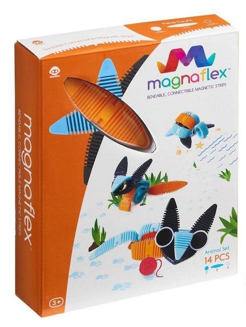 WowWee has Magnaflex, which are awesome magnetic strips that bend and connect for a wide variety of creativity! We received the WowWee Magnaflex animal set, containing 14 pieces to create a few animals, like a dog, owl, and more.