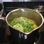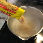 2. Following the instructions on the Vigo rice bag - dump the rice in the boiling broth and stir for 1 minute on boil.