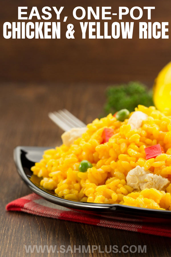 Easy chicken and yellow rice recipe - uses leftover chicken, homemade chicken broth and vigo yellow rice in one pot | www.sahmplus.com