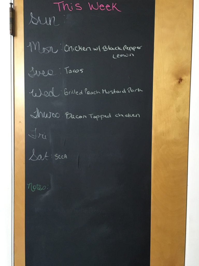 One of the major improvements using this visual calendar is that I don’t have to hear “What’s for dinner?” nearly as often as I used it. And, my husband can check it on the way out to try to keep from eating a similar lunch to what I had planned for dinner. This is actually a bad habit (or amazing skill) of his.