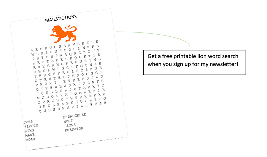Want a little more fun? Join my newsletter and you’ll receive a FREE lion related word search, plus access to a lot more parenting resources!