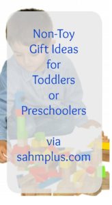 Personally, I’m kind of over buying stuff. Here, I offer non-toy gift ideas for toddlers and preschoolers.