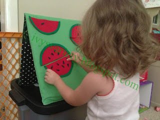 You could also use this activity to teach other math concepts like half and whole, or addition and subtraction. And, what child doesn’t love playing with felt?