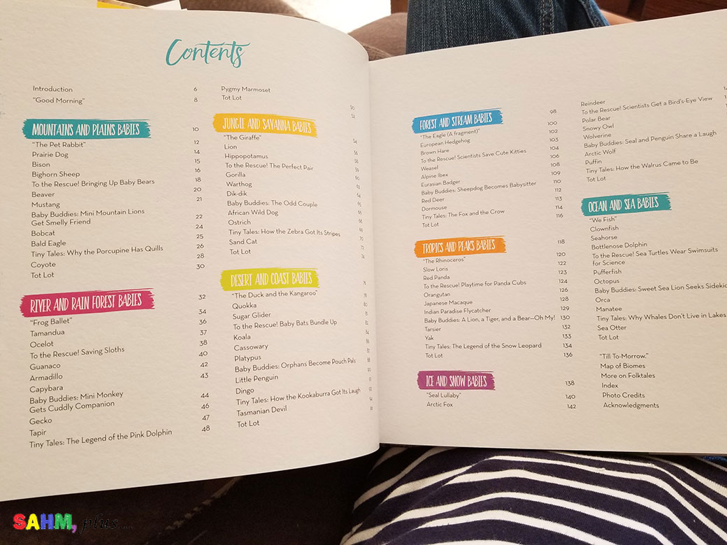The stories and poems are short enough that you’re almost certain to be able to read about at least one animal baby to even the tiniest listener without losing them. Even the fact boxes are ridiculously short, delivering the baby name, where it grows up, and what they snack on.