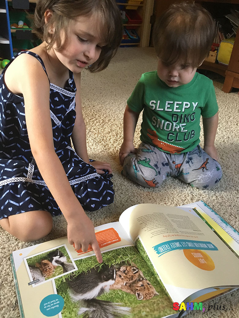 Finally, FUN! The pictures are so engaging that I promise you and the kids will be wishing you had just about every animal in the book. Everyone looks so cuddly and fun, you just won’t be able to help yourself. Well … aside from the snakes and lizards. Those won’t ever get me oooh-ing …. more like ewwww-ing. Still, because the images are so engaging and the stories, poems, or facts or so short, everyone can have fun learning tidbits of information.