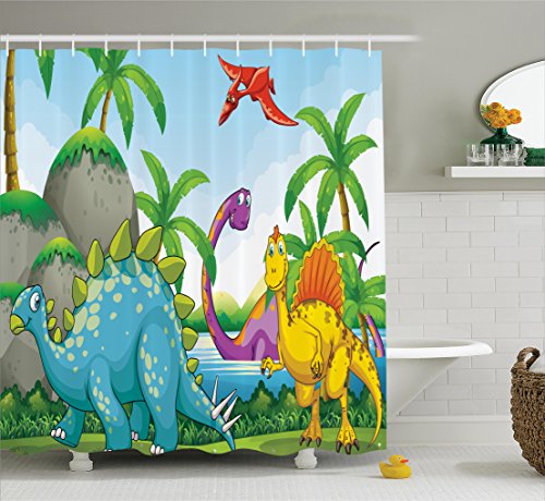 In my opinion this is the perfect dinosaur shower curtain for toddlers and preschoolers. Even elementary school aged kids may like it.