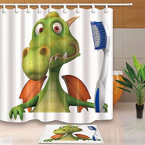 Poedist 4 Pc Dinosaur Shower Curtain Set