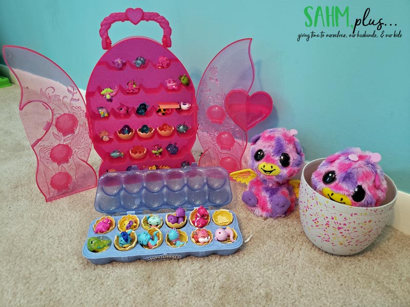 Now, most of her Hatchimals are the tiny ones that are easily lost or stuffed in random places (like mama’s yoga mat to be found at the beginning of class) by her almost 3 year old brother. So, I highly recommend doing more than buying just Hatchimals.