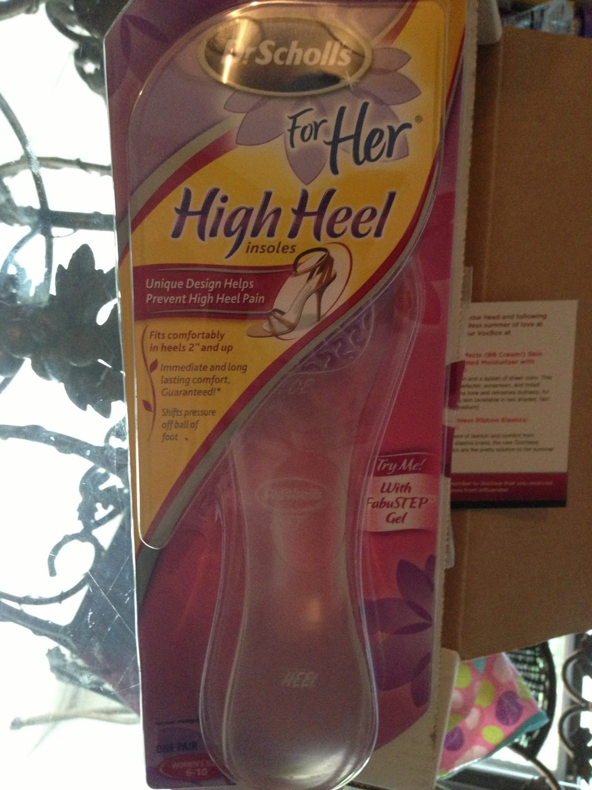 Sadly, with our move, toddler getting sick, hubby traveling for work, and weaning off the pacifier all in a month, getting out, much less dressing up in high heels, was out of the question. I did spend a few minutes trying the Dr. Scholl’s for Her High Heel inserts. While they may be comfortable, take heed in this warning: I tried to put them in a super favorite pair of closed toed heels that fit well, only to find myself feeling like a step-sister trying on Cinderella’s glass slippers … I could barely squeeze my feet in because my toes became too cramped. I had to find a pair of shoes to slip them in that didn’t already fit well. So, my recommendation is to add these inserts to shoes that don’t fit perfectly (I’m a woman, I know that sometimes we buy a great looking shoe at the expense of some comfort hehe).
