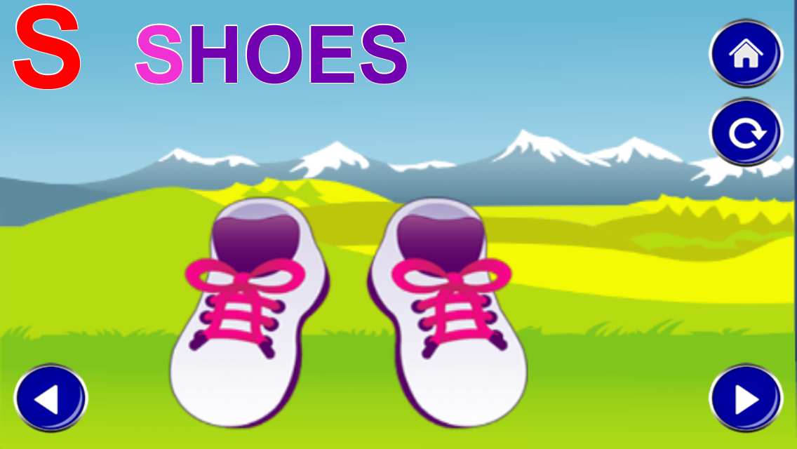 This app is geared toward toddlers and preschoolers with it’s adorable pictures corresponding to their alphabet. There’s a friendly female voice that calls out a letter, then a word that starts with that letter. Each letter has several objects and typically a verb that starts with the letter shown. After the object is called out, you can press the screen to play another of the words or go to the preceding or following letters.