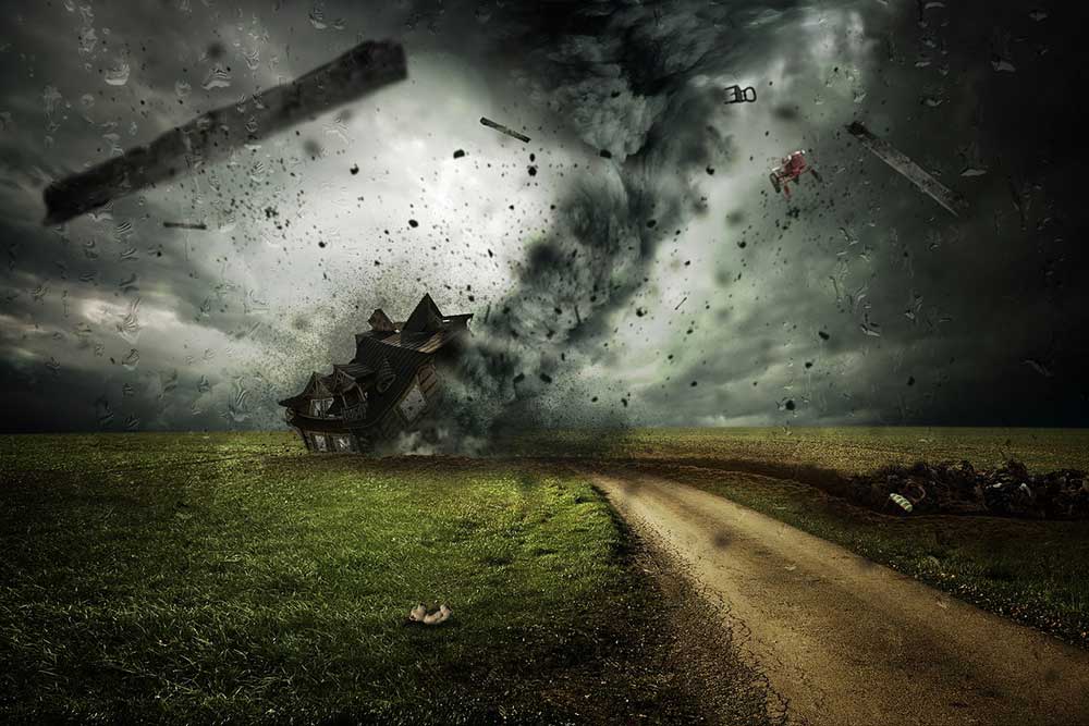 Cyclone destroying home