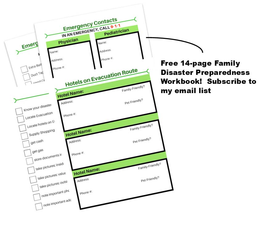 Would you like more help with your family’s disaster preparedness?  I would love to share my 14-page Family Emergency Preparedness Workbook with you.  Simply join my email newsletter to receive immediate access to a FREE resource library of printables for parents, including this workbook.