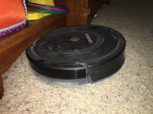 Here, the Roomba got stuck under a shelf in the playroom